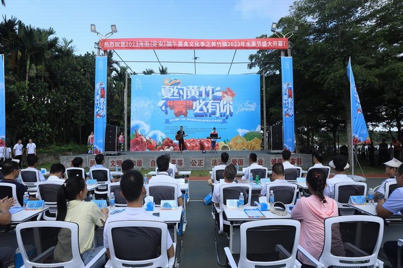 2023海南定安端午美食文化季之黄竹镇2023水果节的活动,由中共定安县委,定安县人民政府主办。定安县发改委,定安县农业农村局,定安县乡村振兴局,定安县旅文局,定安县融媒体中心,中共黄竹镇委,黄竹镇人民政府,定安县发展控股有限公司,定安县中国移动海南公司定安分公司承办。黄竹镇白塘村委会,涵唐酒店,八仙岭共享农庄共同协办。