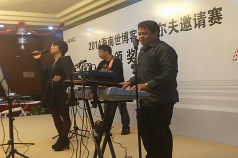 2014海南世博客户高尔夫邀请赛颁奖晚会于12月27日晚在海口美视五月花高尔夫度假酒店宴会厅举办,海口灵思传媒有限公司承接本次晚会乐队演出,活动圆满成功。